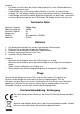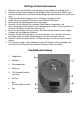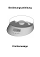 Wichtige Sicherheitshinweise 1. 2. Bitte lesen Sie sich die Bedienungsanleitung vor dem Gebrauch sorgfältig durch. Schützen Sie die Küchenwaage vor Feuchtigkeit, Staub, Chemikalien, Stößen und extremen Temperaturen und halten Sie die Waage von Wärmequellen fern (Herd, Ofen usw.). 3. Stellen Sie die Küchenwaage auf eine rutschfeste und ebene Fläche. 4. Legen Sie das zu wiegende Gut immer in die Mitte der Glasfläche. 5. Benutzen Sie die Waage gemäß der Anweisungen. 6.