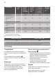 Programmes Charge (kg) Délicats 40 °C Laine/Lavage à la main 30 °C 2) Consom‐ mation énergéti‐ que (kWh) Consom‐ mation d'eau (li‐ tres) Durée ap‐ proximati‐ ve du pro‐ gramme (minutes) Humidité résiduelle (%)1) 2.5 0,55 45 80 37 1 0,35 50 70 32 Programmes coton standard Coton 60 °C stan‐ dard 5 0,84 42 232 60 Coton 60 °C stan‐ dard 2.5 0,63 37 208 60 Coton 40 °C stan‐ dard 2.5 0,63 37 208 60 1) Au terme de la phase d'essorage. 2) Non disponible sur certains modèles.
