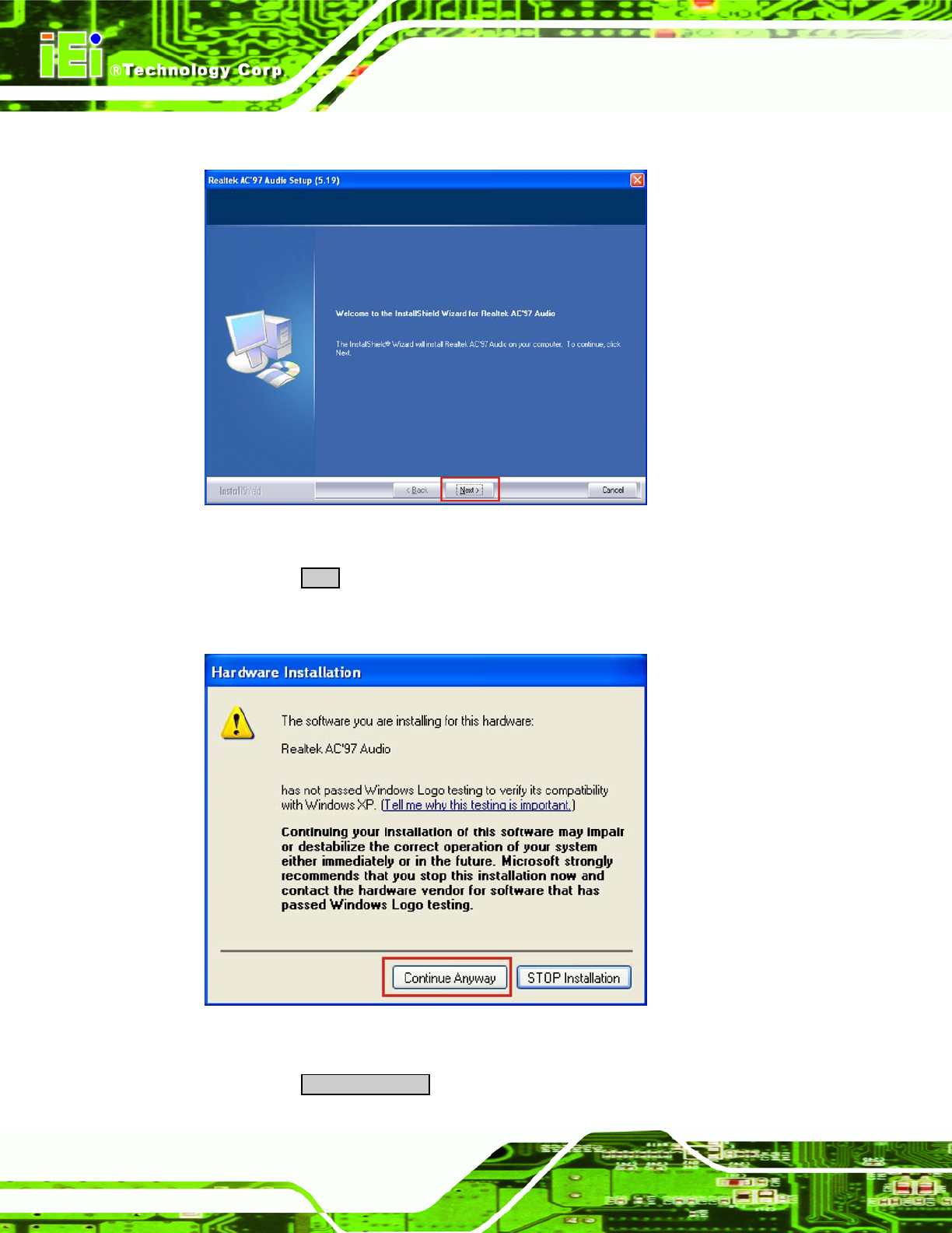 Step 5: The AC’97 Driver Installation screen in Figure 7-21 appears.