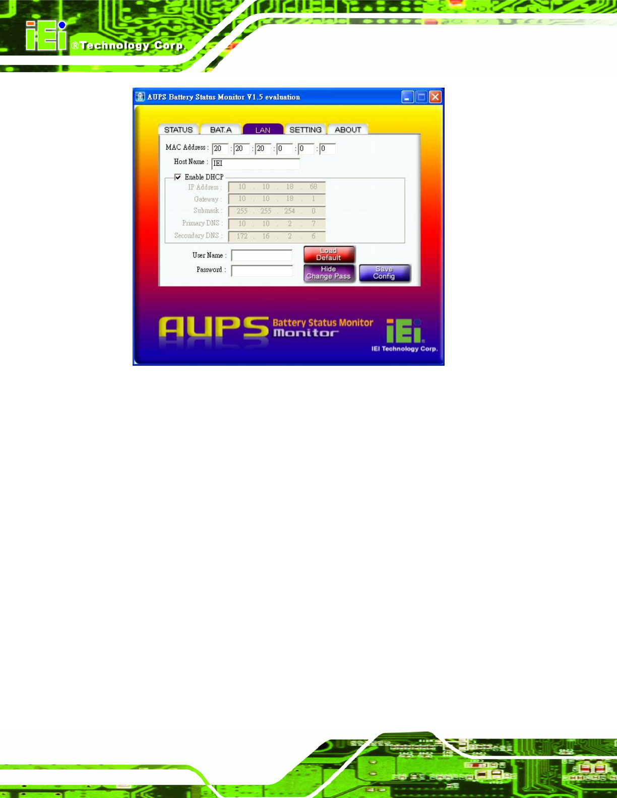 Figure 8-13: LAN Setting – Change Password