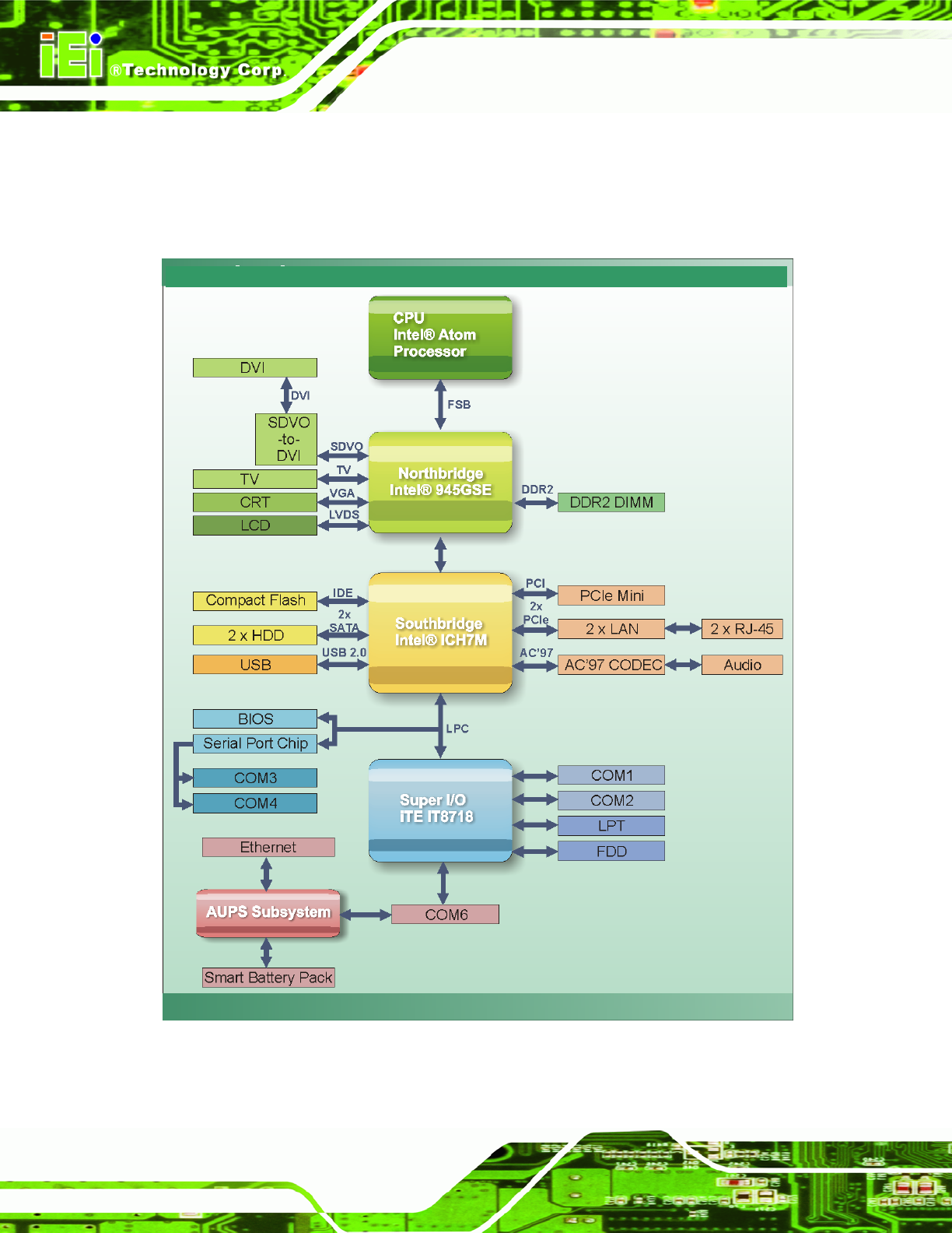 Figure 2-3 shows the data flow between the two on-board chipsets and other components