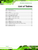 IBX-530B-270 Embedded System List of Tables Table 1-1: Model Variations ...........................................................................................................3 Table 1-2: Technical Specifications..............................................................................................4 Table 3-1: Jumpers .......................................................................................................................19 Table 3-2: AT Power Select Jumper Settings ...............