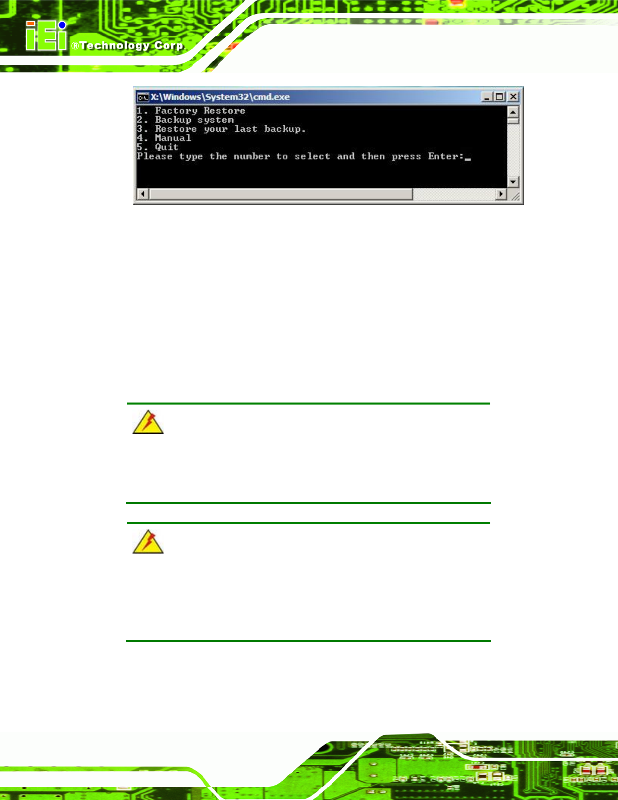 1. Factory Restore: Restore the factory default image (iei.GHO) created in