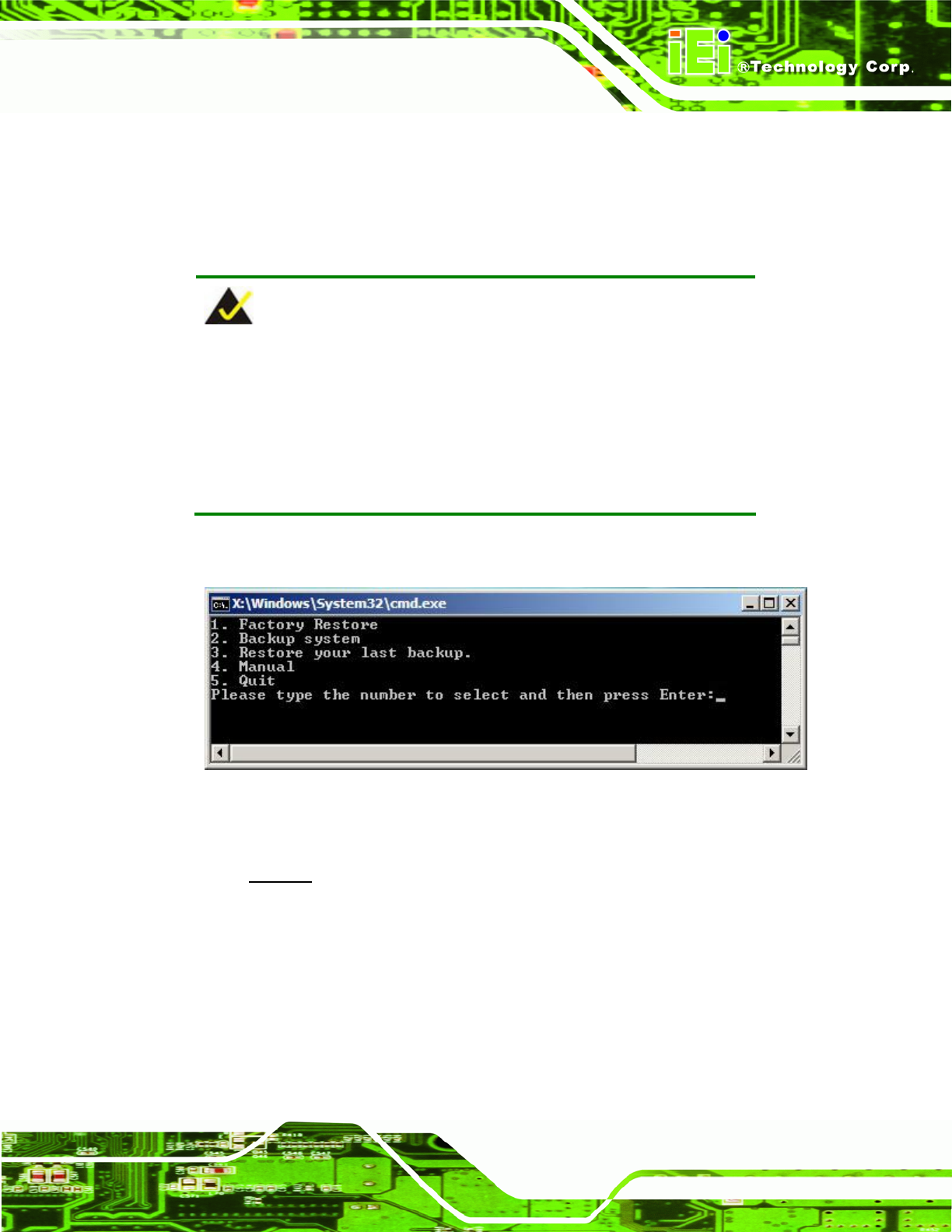 The IEI one key recovery is an easy-to-use front end for the Norton Ghost system backup