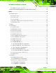 ICE-QM770 COM Express Module List of Tables Table 1-1: ICE-QM770 Specifications ...........................................................................................8 Table 2-1: Packing List.................................................................................................................12 Table 2-2: Optional Items.............................................................................................................12 Table 3-1: Peripheral Interface Connectors ...................