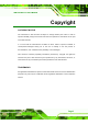IEM-LX-800 ETX CPU Module Copyright COPYRIGHT NOTICE The information in this document is subject to change without prior notice in order to improve reliability, design and function and does not represent a commitment on the part of the manufacturer. In no event will the manufacturer be liable for direct, indirect, special, incidental, or consequential damages arising out of the use or inability to use the product or documentation, even if advised of the possibility of such damages.