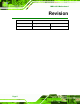 IMBA-9454 Motherboard Revision MODEL IMBA-9454 Motherboard Revision Number Description Date of Issue 1.