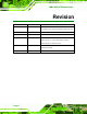 IMBA-Q670 ATX Motherboard Revision Date Version Changes 1 October, 2012 2.10 Updated for R21 version: - Changed audio codec from Realtek ALC888 to ALC662 24 February, 2012 2.01 Modified Table 3-16: RS-422/485Connector Pinouts 9 September, 2011 2.00 Modified for R20 version 16 August, 2011 1.02 Modified Section 4.3.1: AT/ATX Power Select Jumper Added Section 4.6: Intel® AMT Setup Procedure Added Chapter 6: Software Drivers 30 June, 2011 1.01 Modified Section 4.2.