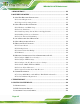 IMBA-Q870-i2 ATX Motherboard List of Tables Table 1-1: IMBA-Q870-i2 Specifications .......................................................................................8 Table 2-1: Packing List.................................................................................................................12 Table 2-2: Optional Items.............................................................................................................14 Table 3-1: Peripheral Interface Connectors ....................