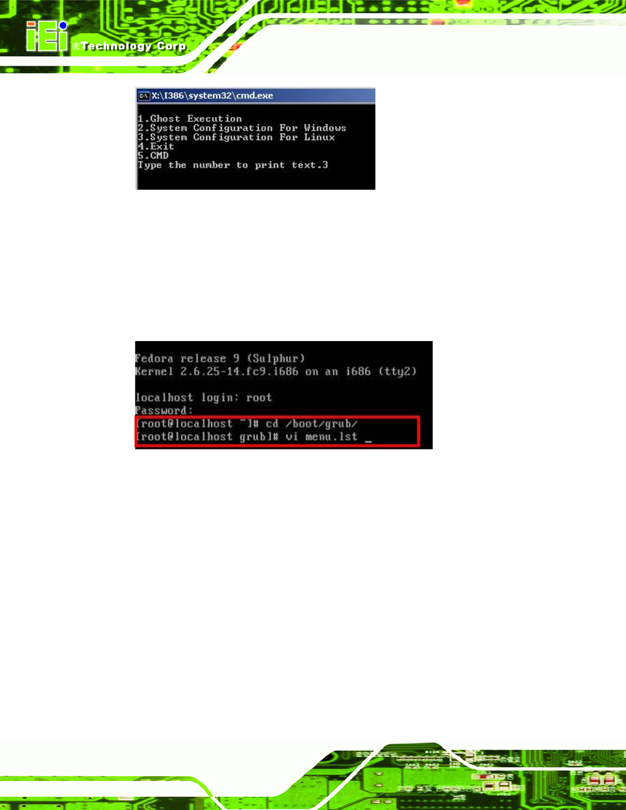 Figure B-24: Access menu.lst in Linux (Text Mode)