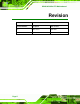 KINO-9453 Mini-ITX Motherboard Revision MODEL KINO-9453 Socket 479 Intel Motherboard Revision Number Description Date of Issue 1.