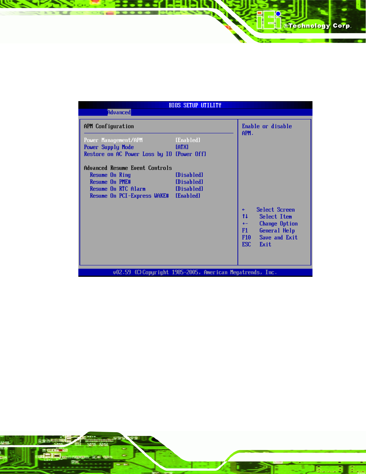 BIOS Menu 10:Advanced Power Management Configuration