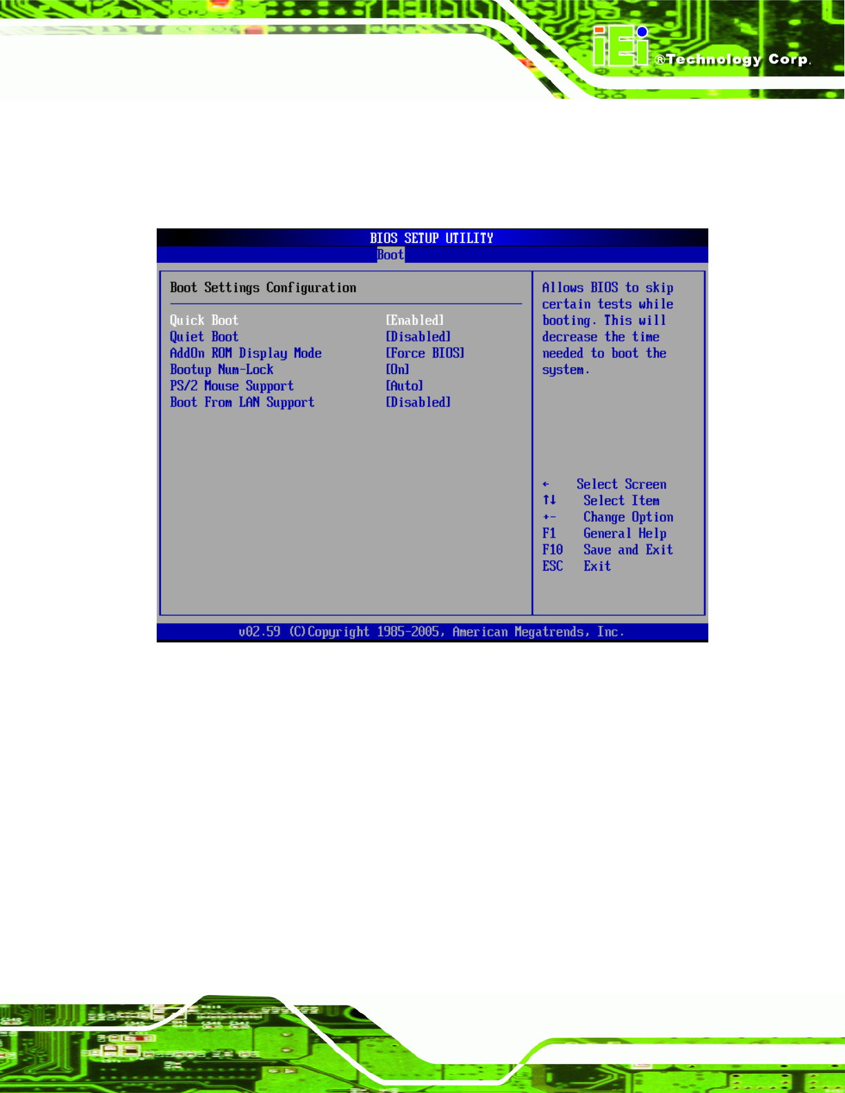 Use the Boot Settings Configuration menu (BIOS Menu 15) to configure advanced