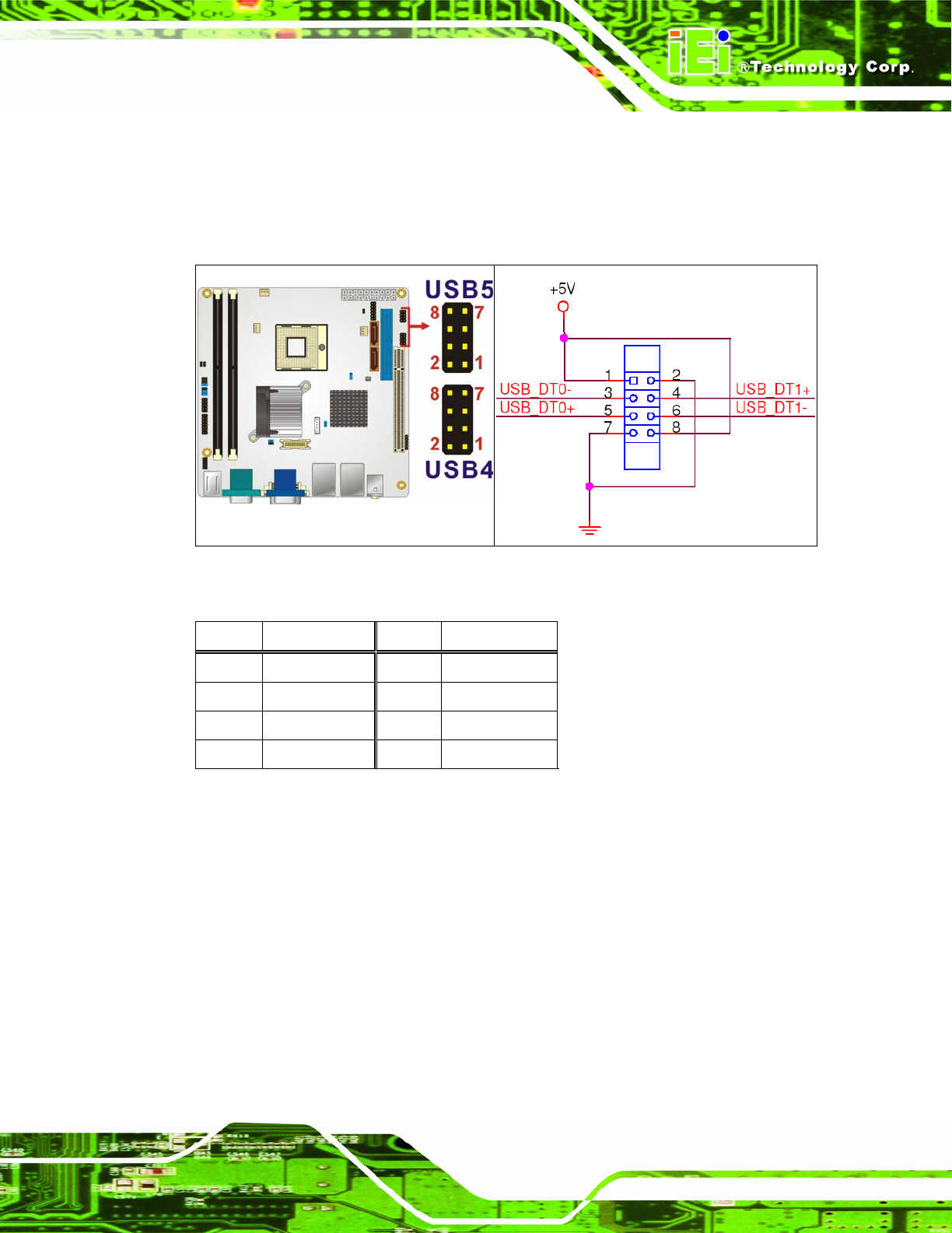 One 2x4 pin connector provides connectivity to two USB 2.0 ports. The USB ports are