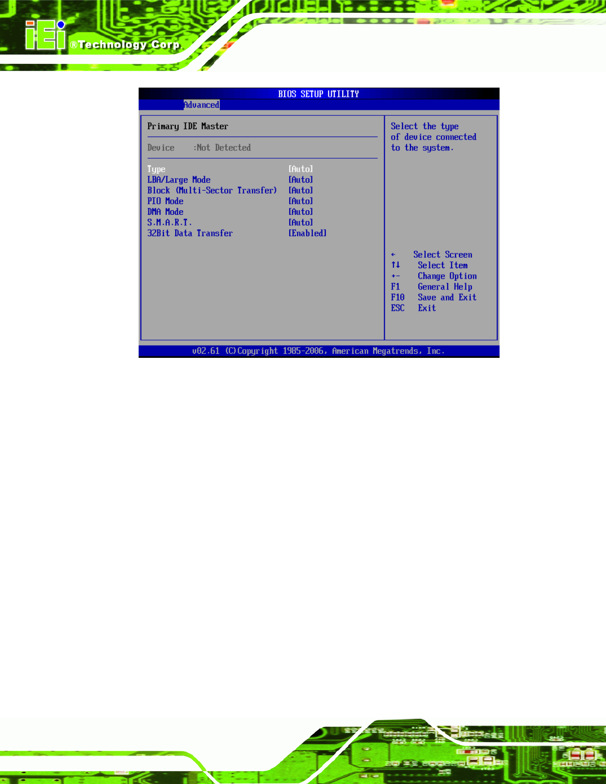 The BIOS auto detects the IDE disk drive type