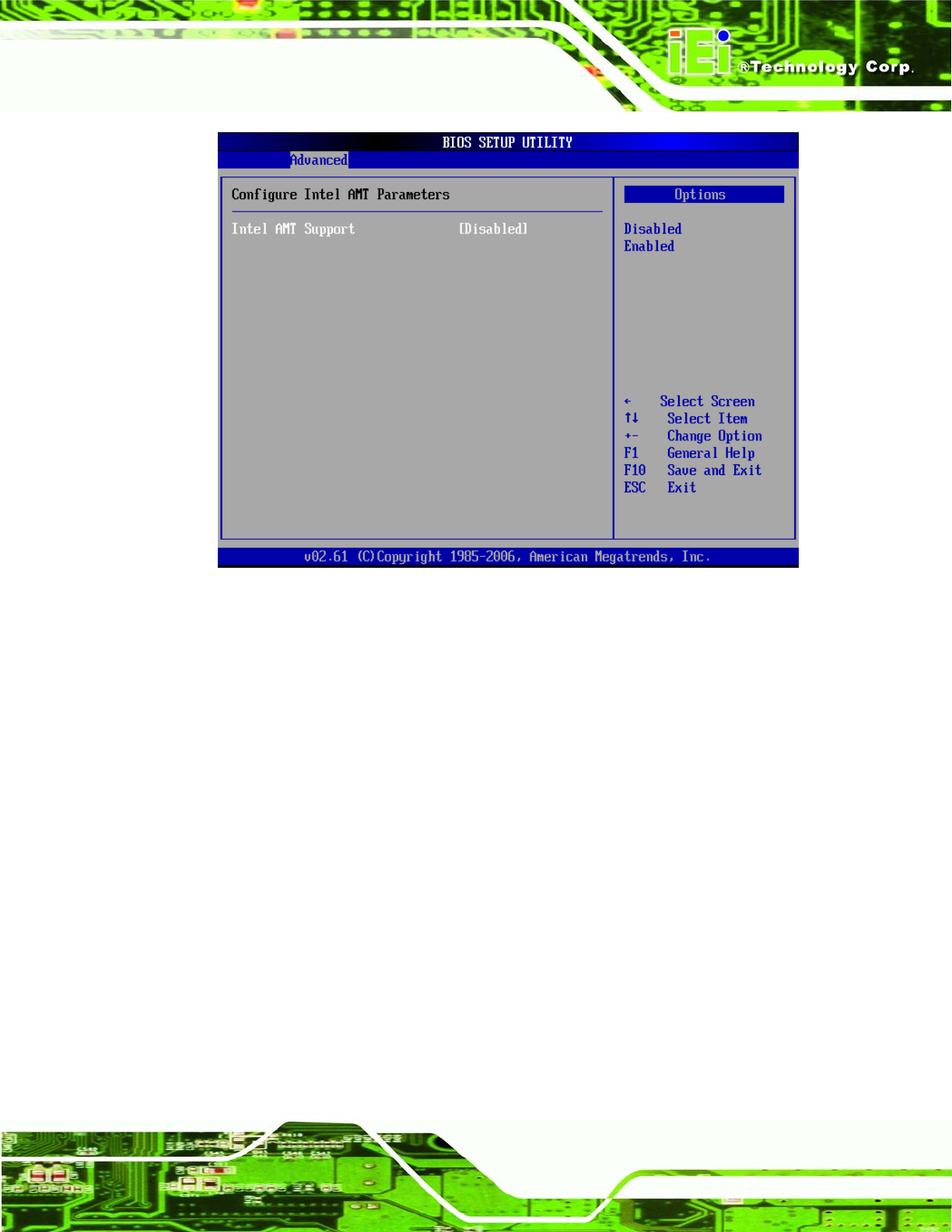 Use the Intel AMT Support option to enable or disable the Intel AMT support.