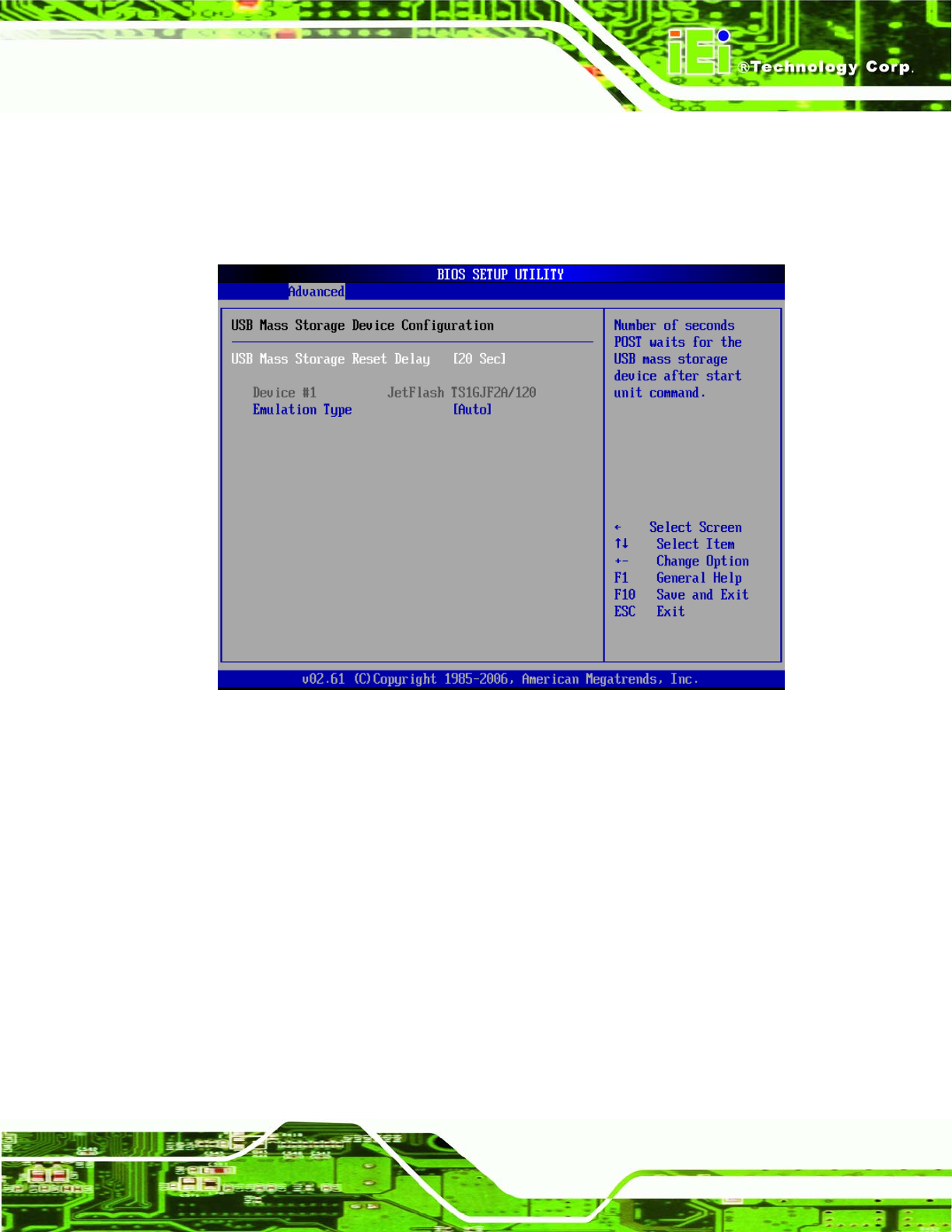 BIOS Menu 13: USB Mass Storage Device Configuration