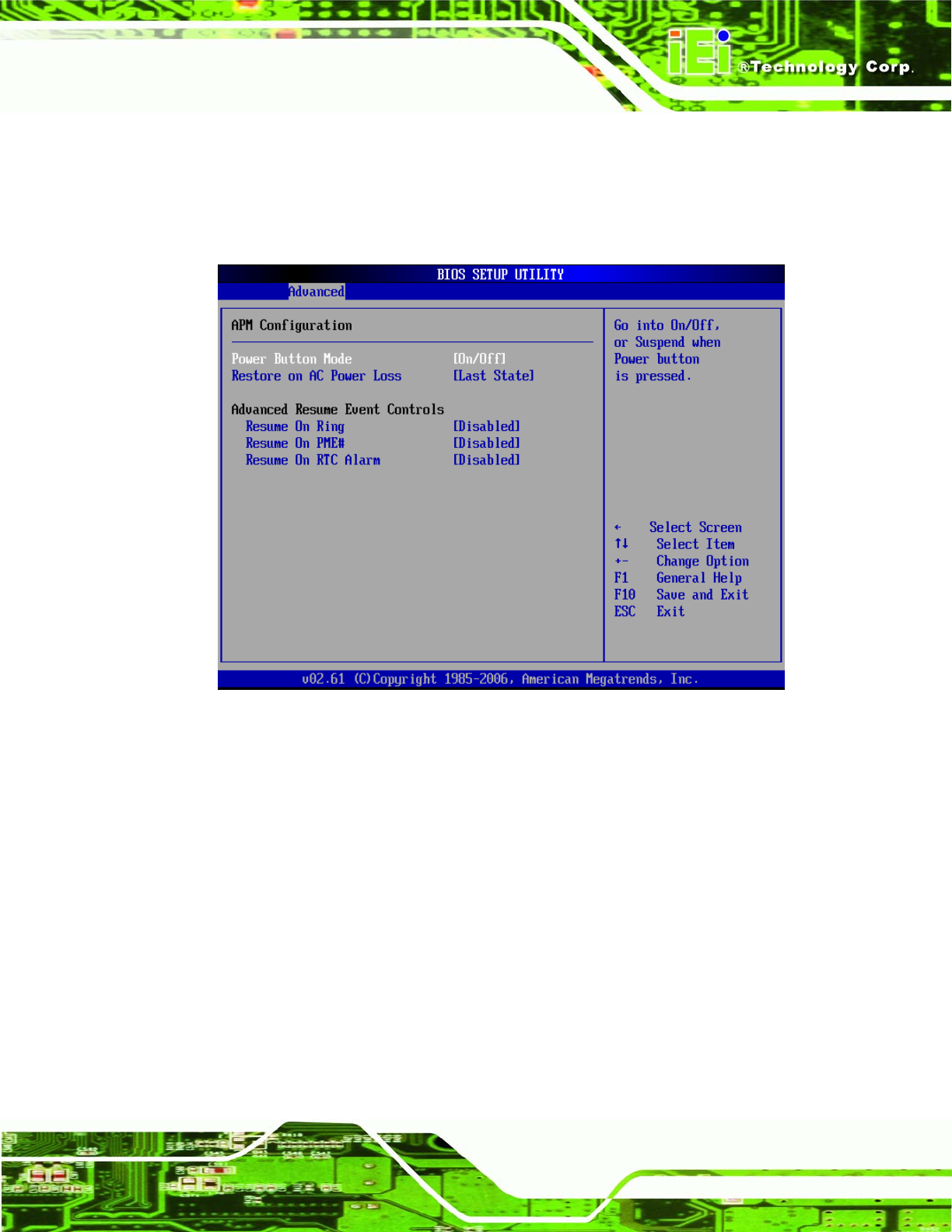 The APM Configuration menu (BIOS Menu 9) allows the advanced power management
