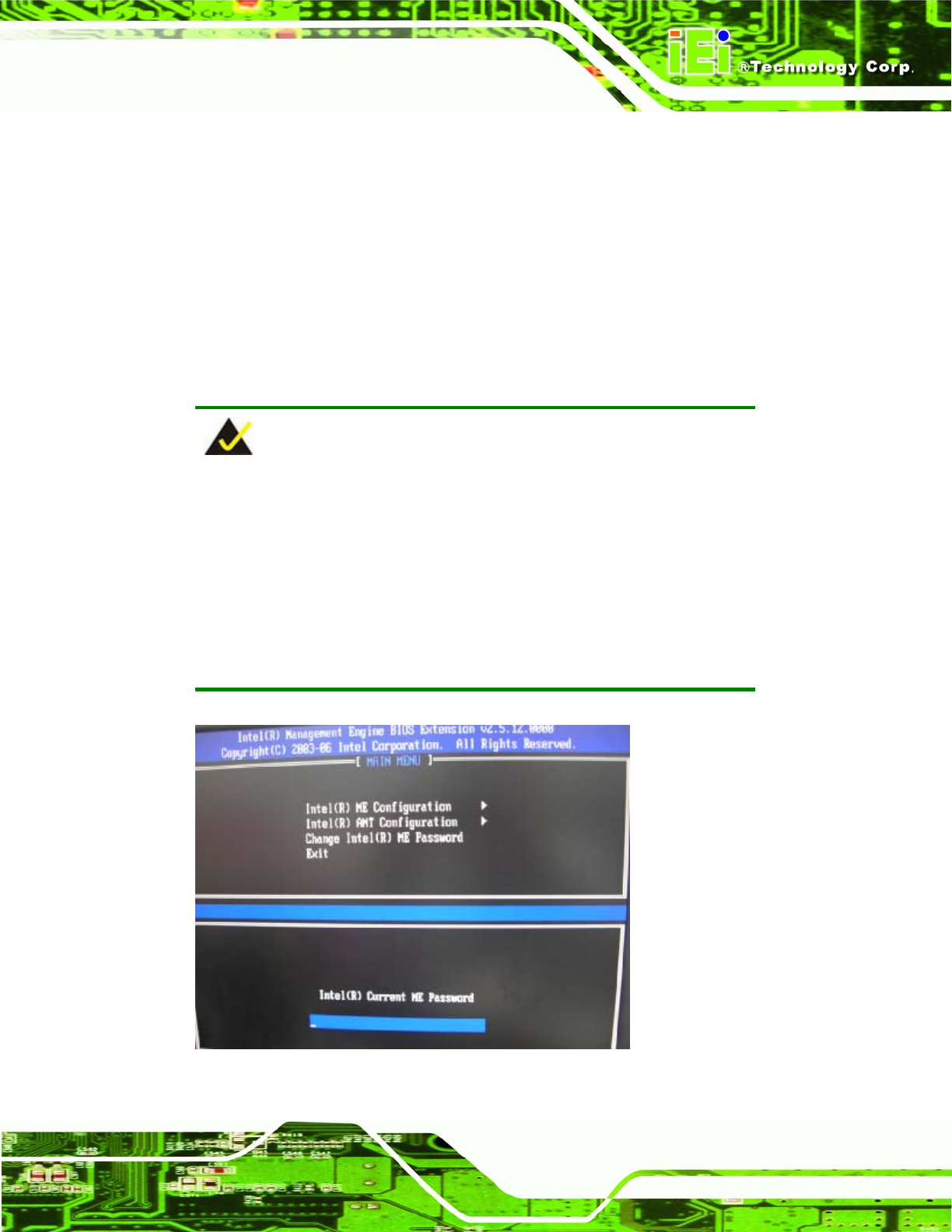 process. To get into the Intel® MEBx settings, press <Ctrl+P>.