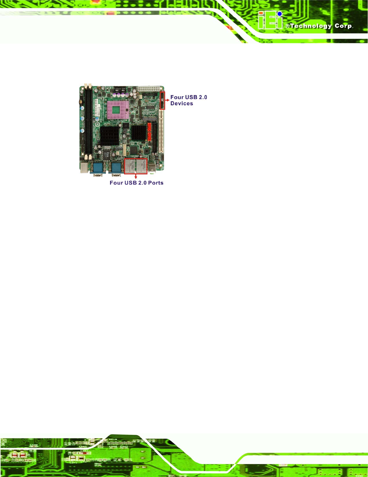 The eight USB ports implemented on the KINO-9652 are connected to four internal