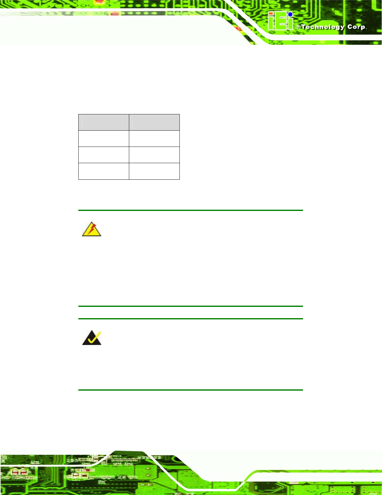 Table 2-3 shows the power consumption parameters for the KINO-9652 running with a