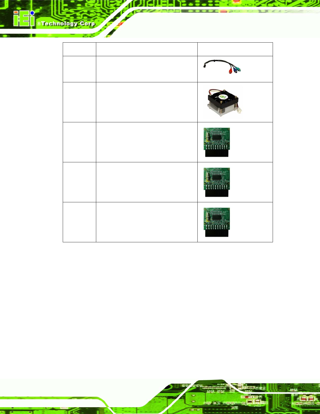 Table 3-2: Optional Items