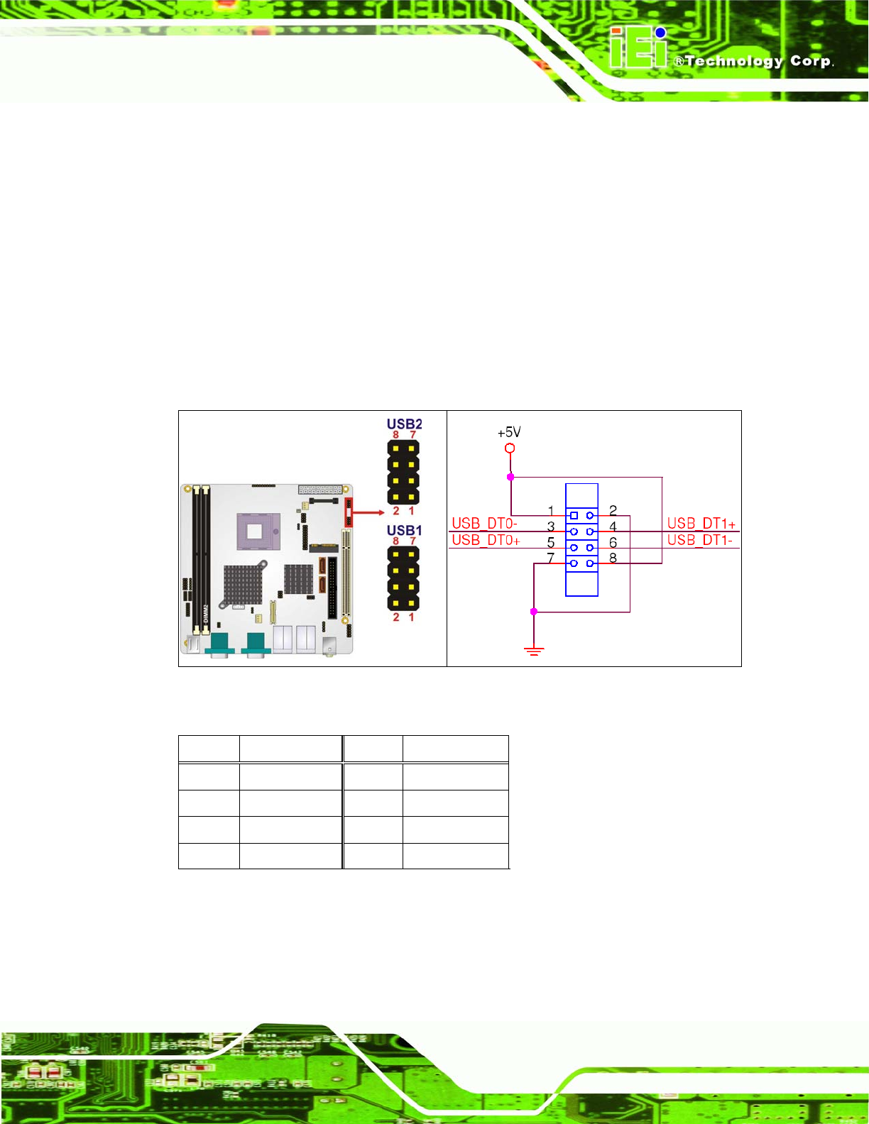 One 2x4 pin connector provides connectivity to two USB 2.0 ports. The USB ports are