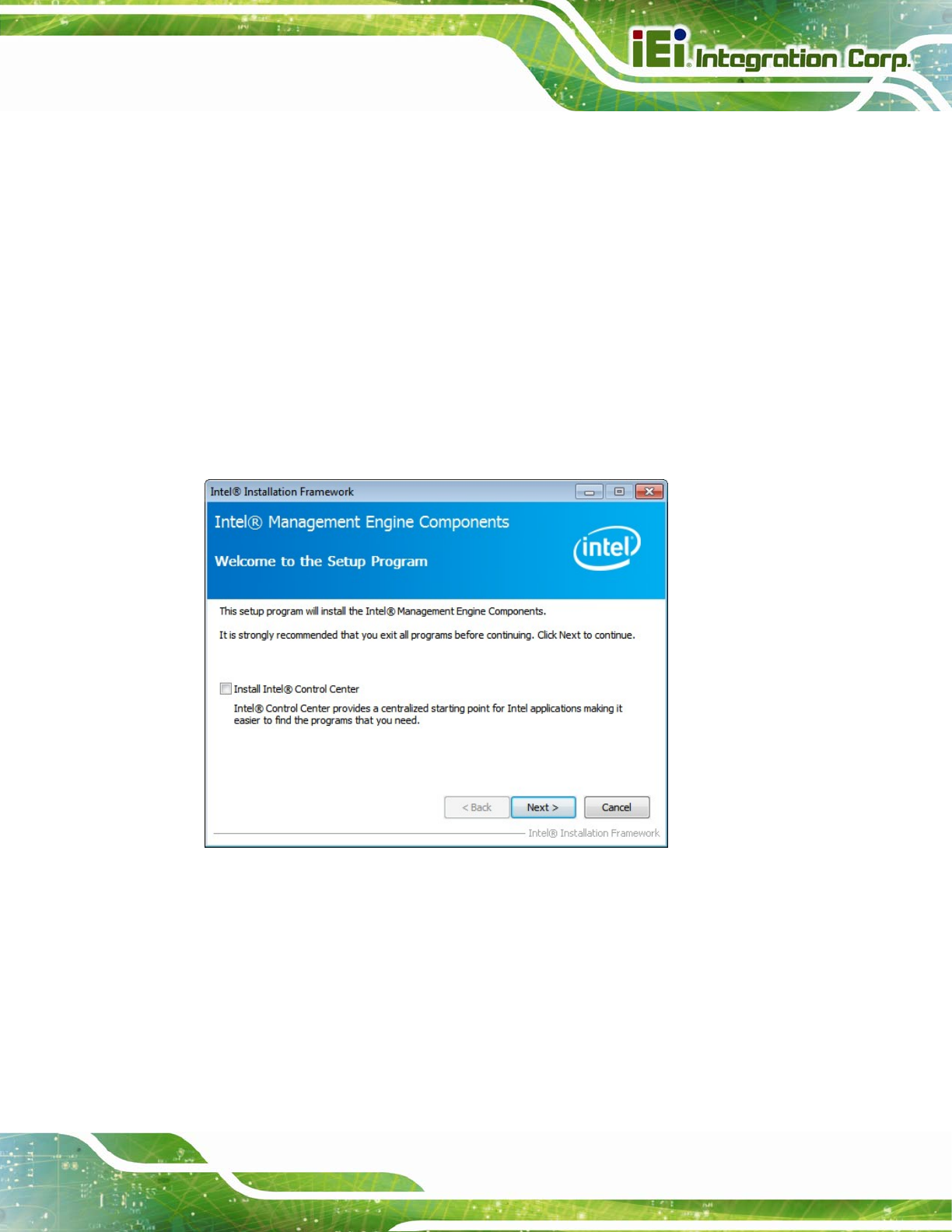 Figure 6-28: Intel® ME Driver Welcome Screen
