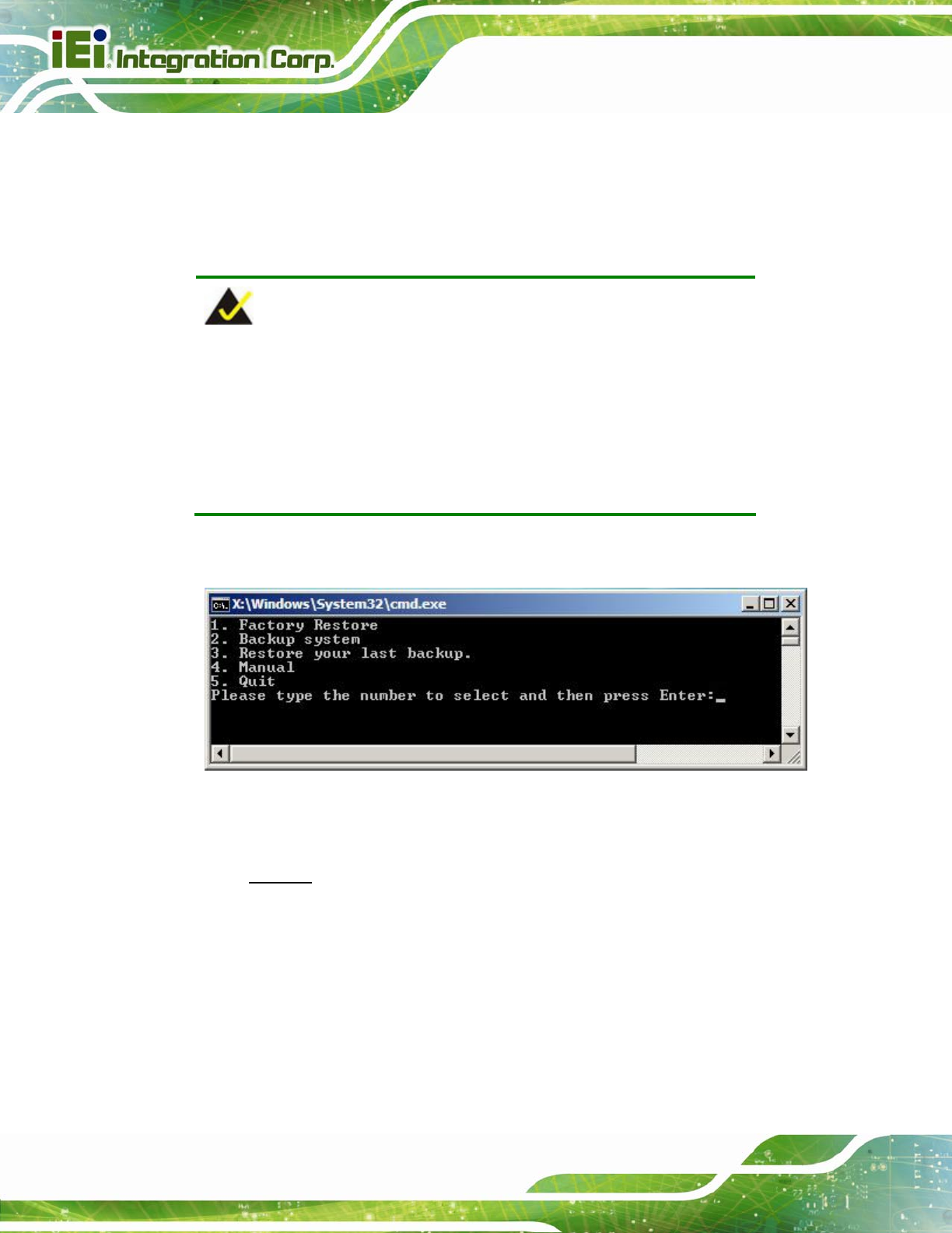 The IEI one key recovery is an easy-to-use front end for the Norton Ghost system backup