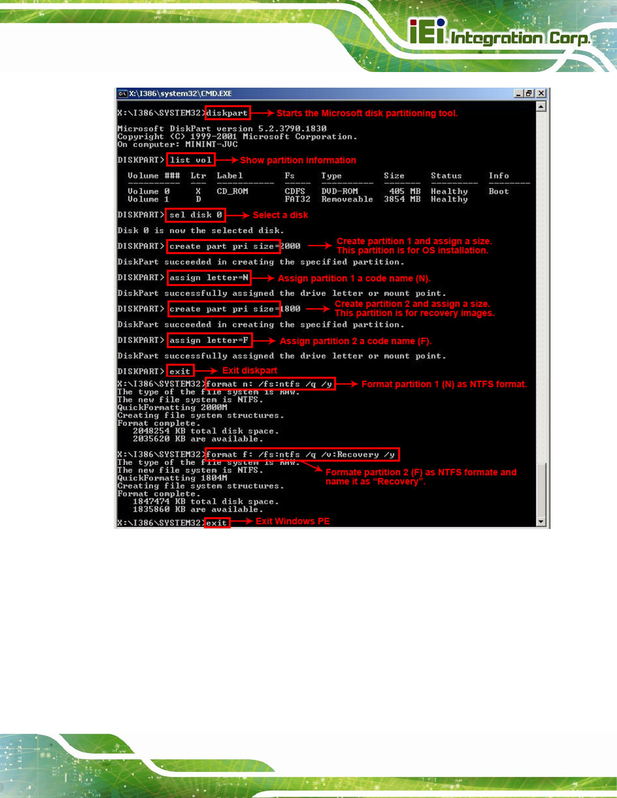 Figure B-5: Partition Creation Commands