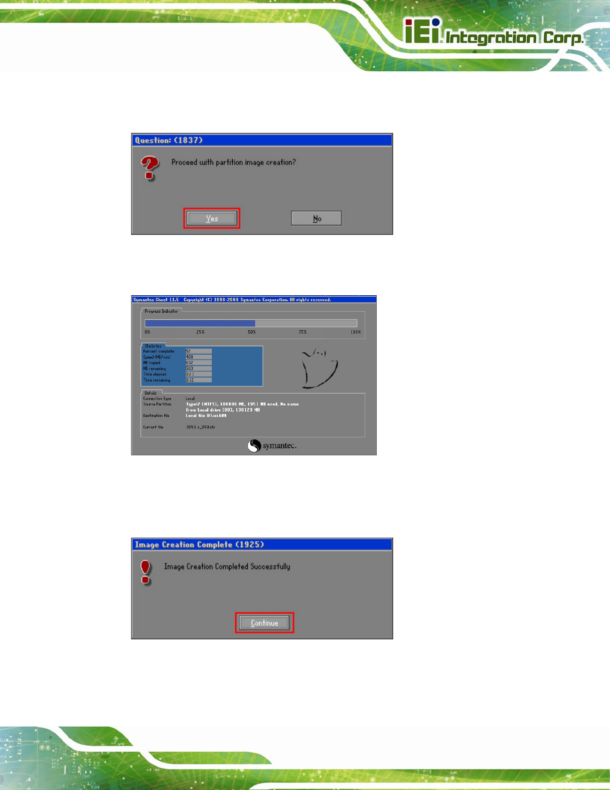 Step 9: The Proceed with partition image creation window appears, click Yes to