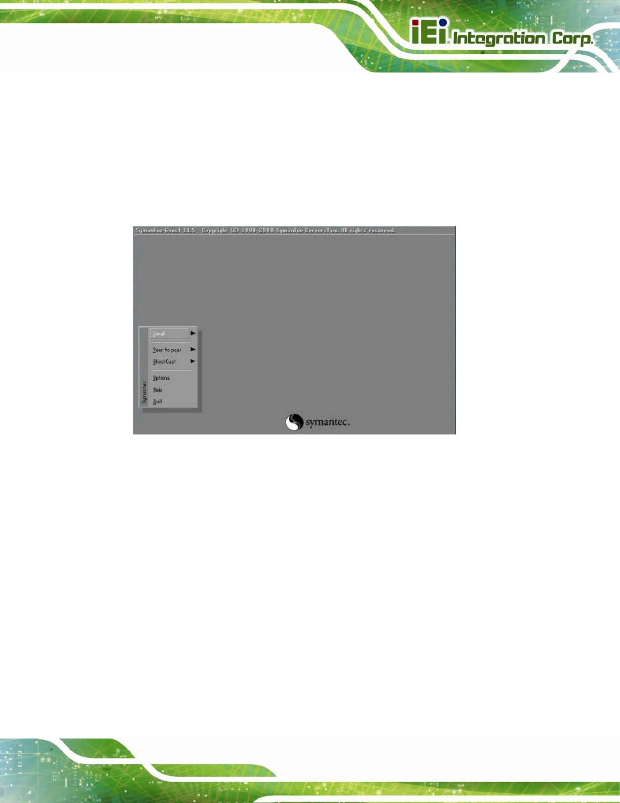 Step 2: The Symantec Ghost window appears. Use the Ghost program to backup or
