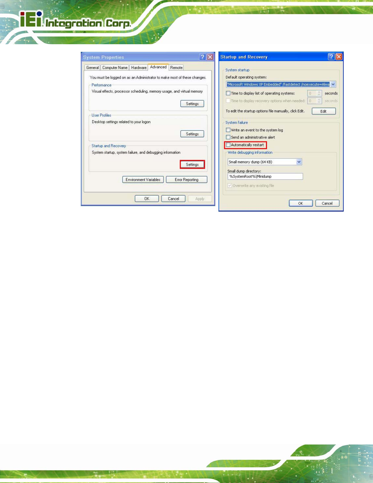 Advanced → iEi Feature → Auto Recovery Function → Enabled