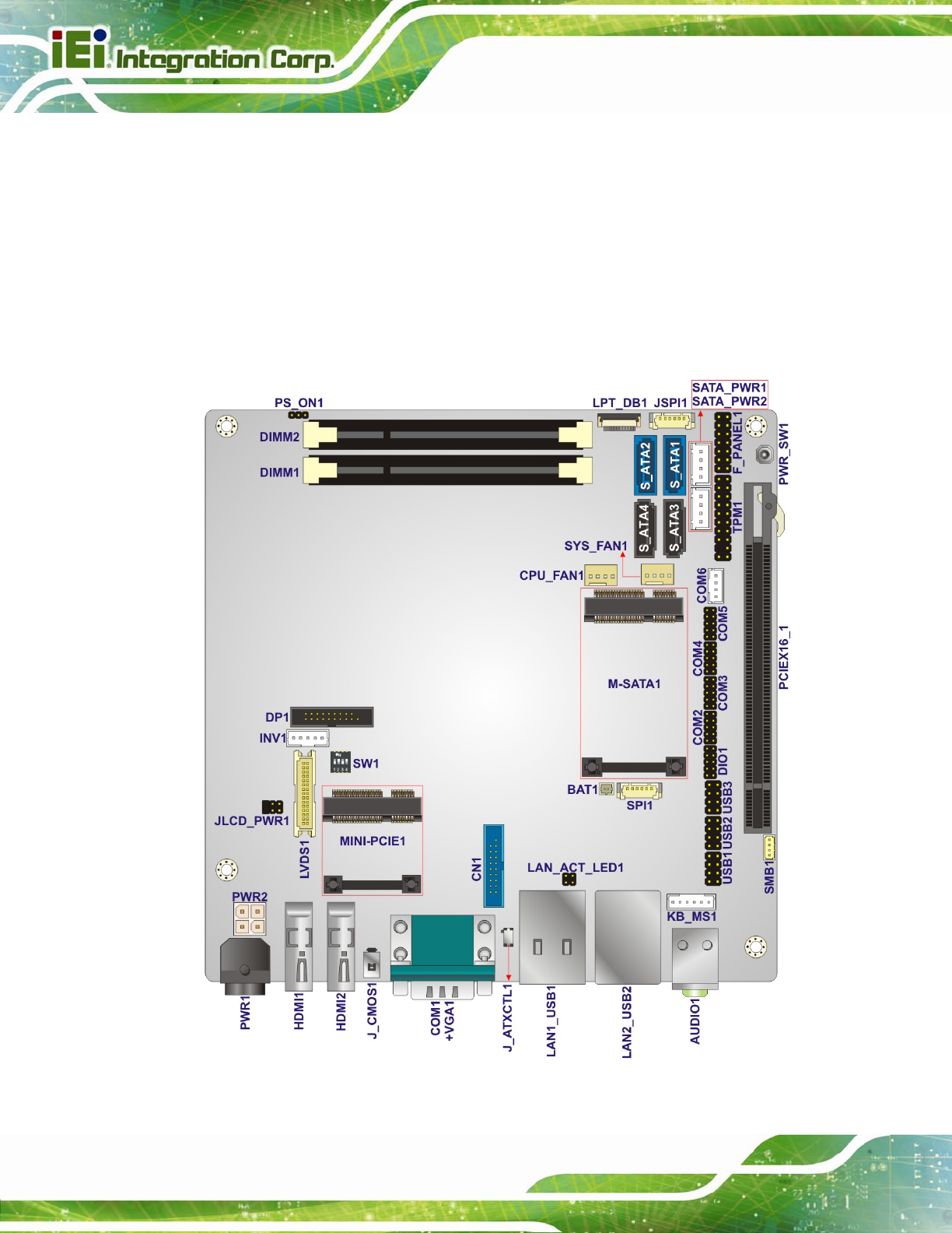 The figure below shows the on-board peripheral connectors, rear panel peripheral