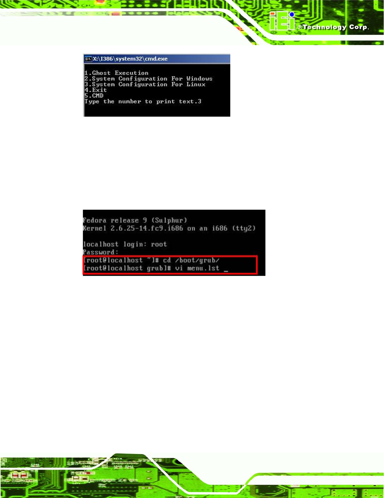 Figure C-24: Access menu.lst in Linux (Text Mode)