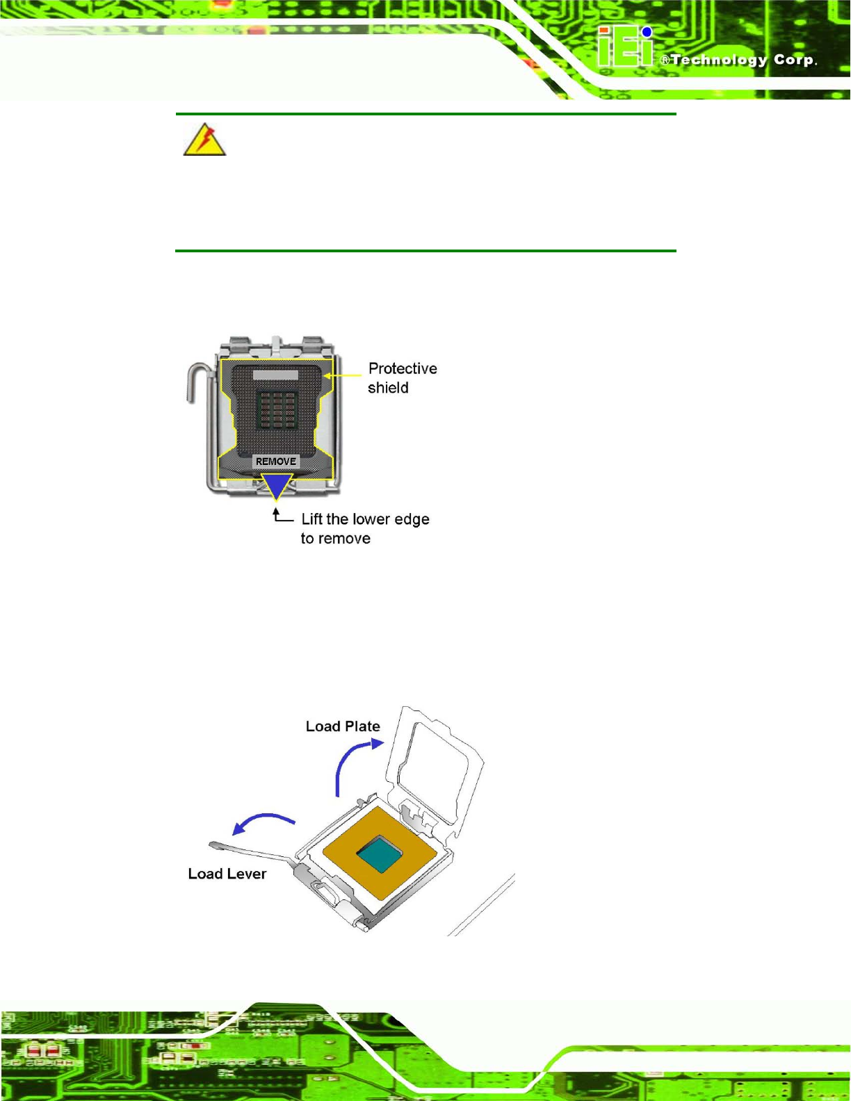 Step 2: Open the socket. Disengage the load lever by pressing the lever down and