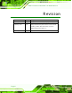 K INO-P V-D5253-D4253 Mini-IT X Motherboard R evis ion Date Version Changes 7 February, 2012 1.02 Modify Section E.3. Assembly Language Example 7 February, 2012 1.01 Modify Motherboard’s picture because V1.02 removed JCOM63, JCOM64, CN8, CN9 and IR1 connectors Modified Dimension in Figure 1-3. 7 February, 2012 P age ii 1.