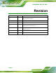 KINO-QM670 Mini-ITX SBC Revision Date Version Changes 24 April, 2014 2.01 Modified LAN pinouts Updated Chapter 2: Unpacking 24 December, 2013 2.00 Updated for R20 version 7 February, 2013 1.04 Updated LAN port pinouts 3 May, 2012 1.03 Updated Section 3.2.20 SPI Flash Connector Updated Appendix C One Key Recovery 15 December, 2011 1.02 Minor update to Section 3.2.13 12V Power Connector and Section 3.2.14 SATA Drive Connectors 10 August, 2011 1.