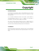 KINO-QM670 Mini-ITX SBC Copyright COPYRIGHT NOTICE The information in this document is subject to change without prior notice in order to improve reliability, design and function and does not represent a commitment on the part of the manufacturer. In no event will the manufacturer be liable for direct, indirect, special, incidental, or consequential damages arising out of the use or inability to use the product or documentation, even if advised of the possibility of such damages.