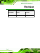 NANO-9452 EPIC Motherboard Revision MODEL NANO-9452 Socket 479 Intel Motherboard Revision Number Description Date of Issue 1.