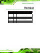 NANO-9452 EPIC Motherboard Revision Date Version Changes June 2011 4.01 Minor revisions to Chapter 4 Connector Pinouts December 2010 4.00 Changed LAN chipset from Broadcom to Realtek RTL8111E Added J_ATXCTL1 and JSPI1 jumper setting September 2010 1.12 Minor update August 2008 1.11 Changed SATA II to SATA and 3.0 Gb/s to 1.5 Gb/s March 2008 1.10 Intel® 945GM changed to Intel® 945GME October 2007 1.01 Added “Hazardous Materials Disclosure” appendix January 2007 1.