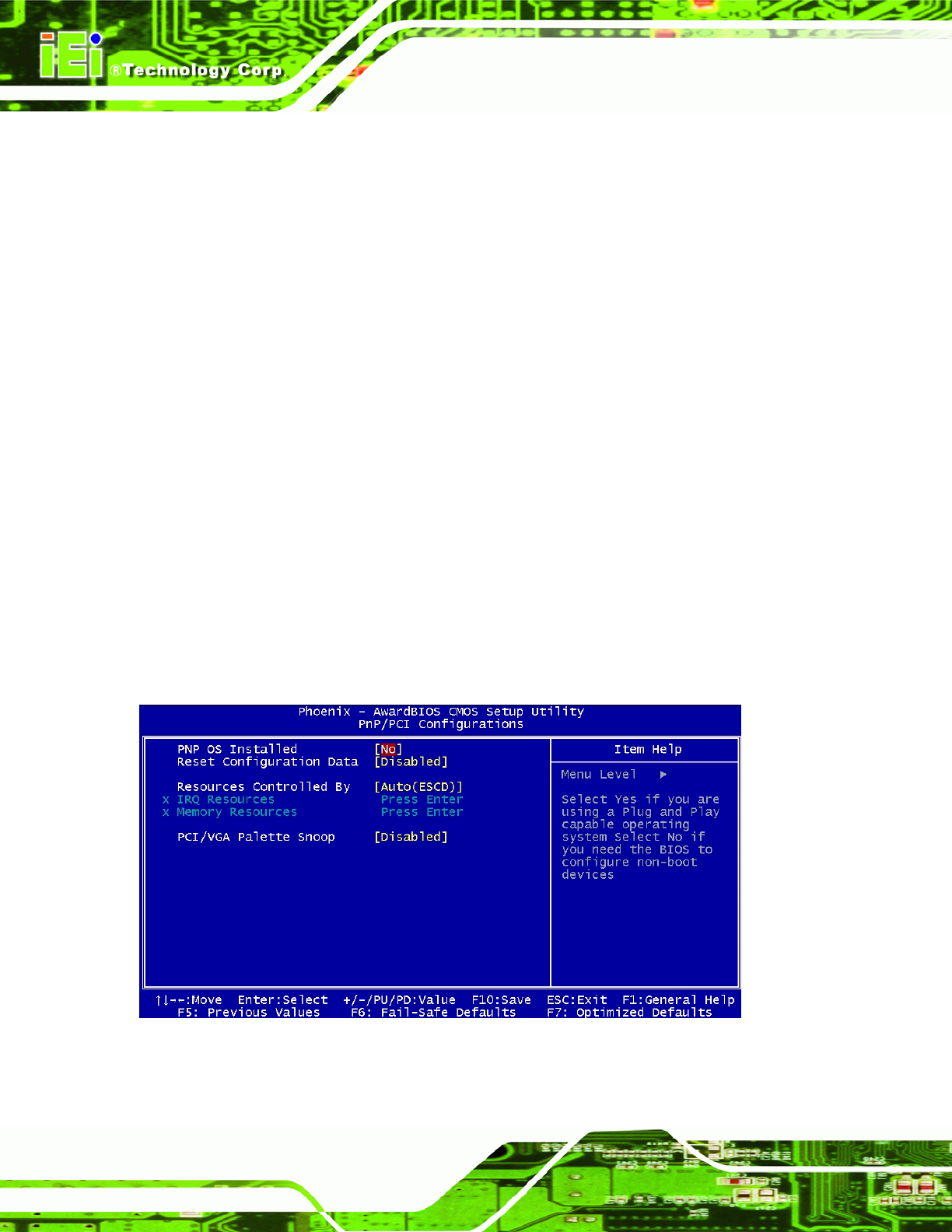 Use the PnP/PCI Configurations menu (BIOS Menu 9) to set the plug and play, and PCI