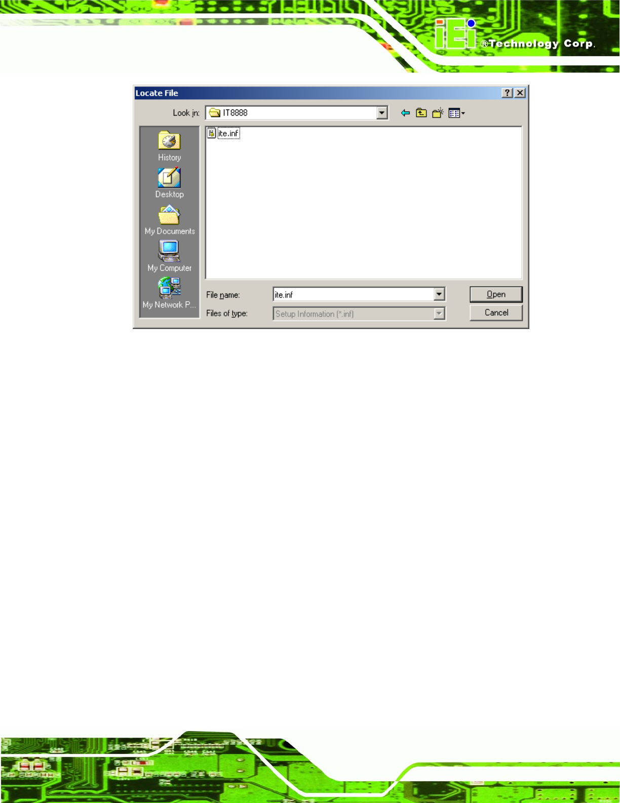 Click OK to continue. A driver files location menu window appears. Select the ite.inf file