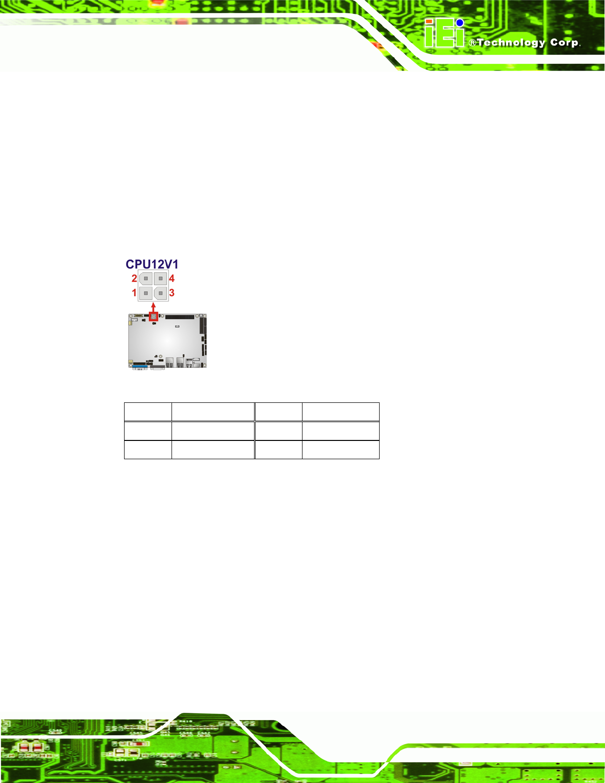 Table 3-16: CPU 12V Power Connector Pinouts