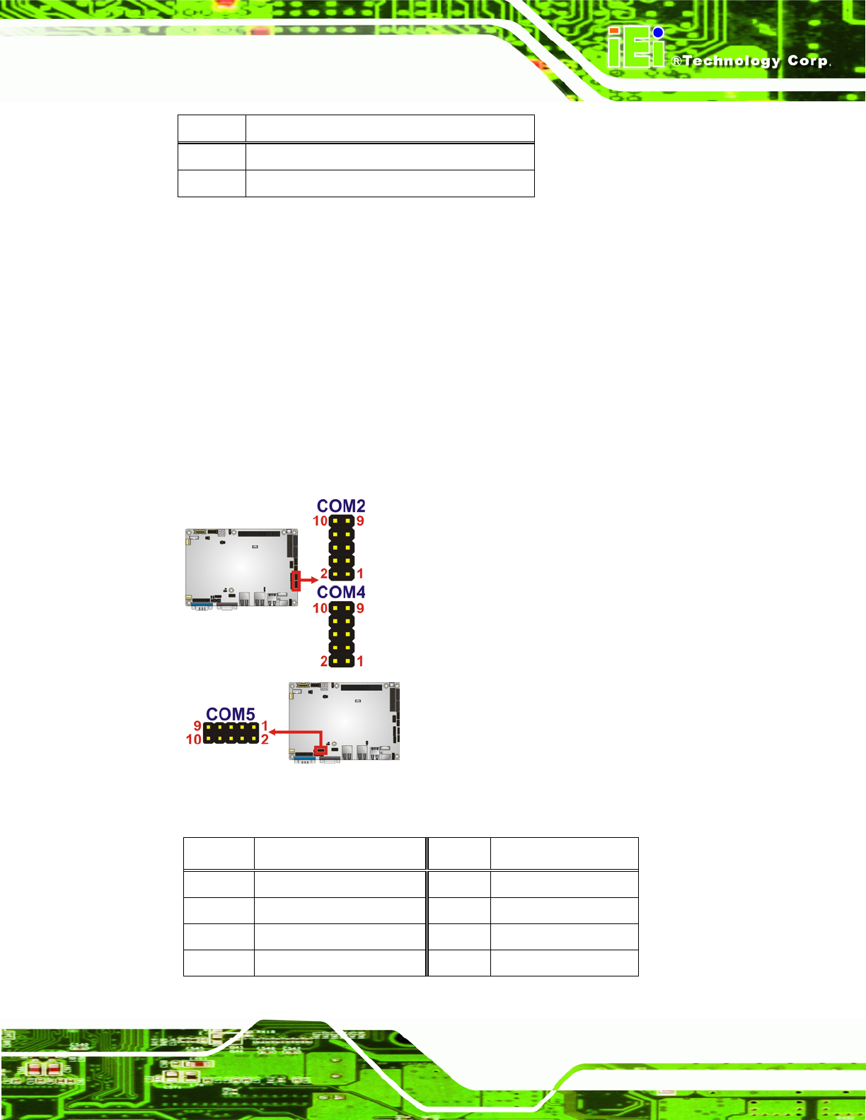 Figure 3-18: COM Connector Pinout Locations
