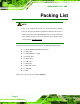 NOVA-945GSE 5.25” SBC 1 VGA cable (P/N: 32000-033804-RS) 1 Mini jumper pack (2.0mm) (P/N: 33100-000033-RS) 1 Utility CD 1 Quick Installation Guide 3.3.