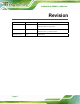 PCIE-Q870-i2 PICMG 1.3 CPU Card Revision Date Version Changes 24 April, 2014 1.02 Modified LAN pinouts Updated Chapter 2: Packing List 24 March, 2014 1.01 Deleted I2C information Updated Section 2.4: Optional Items 14 January, 2014 Page ii 1.