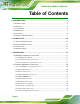 PCIE-Q870-i2 PICMG 1.3 CPU Card List of Tables Table 1-1: PCIE-Q870-i2 Specifications........................................................................................9 Table 2-1: Packing List.................................................................................................................13 Table 2-2: Optional Items.............................................................................................................15 Table 3-1: Peripheral Interface Connectors .................