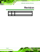PCISA-9652 Half-Size CPU Card Revision Date Version Changes 2008-08 1.01 Modified part numbers of the SATA cable, SATA power cable and USB cable 2008-04 Page ii 1.