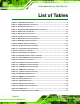 Table 4-5: LVDS Screen Resolution Jumper Settings ..............................................................58